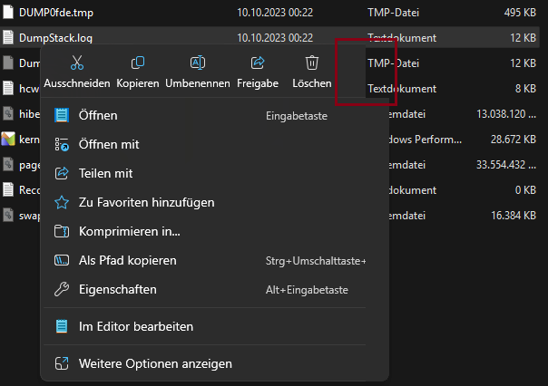 Es tritt nicht nur auf, wenn man eine (längere) "Pause" macht, sondern kann auch mehrmals in einer "Serie" von Tests passieren. Oder sogar erst beim dritten"Versuch" oder so ... Es war zuerst nur bei Desktop-Icons auf Dateien oder Verknüpfungen, dann doch auch mal "woanders" im Explorer (C:\DumpStack.log).