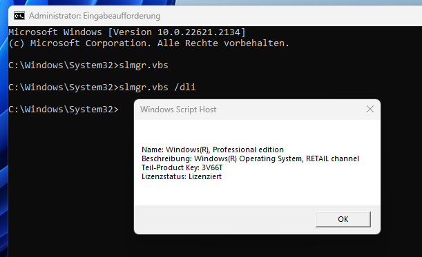 ich habe ein Laptop mit Windows 11 Home (Retail). Ich habe auf powershell folgendes eingegeben "wmic path softwarelicensingservice get OA3xOriginalProductKey" und es kam ein anderes Product key raus. Ich habe anschließend diesen key mit Microsoft PID Checker geprüft und es kam heraus das es ein OEM Windows 8 Pro ist. So wie ich das verstanden habe ist der OEM Schlüssel auf mein Mainboard gespeichert und ich habe ein Retail Windows 10 Home Installiert/aktiviert gehabt (keine ahnung warum).