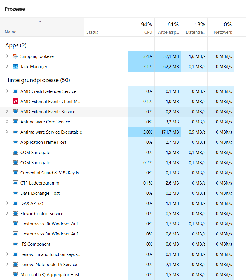 Dann bin ich mal in den Taskmanager gegangen und sehe, dass hier ca. 50 Hintergrundprozesse laufen.
