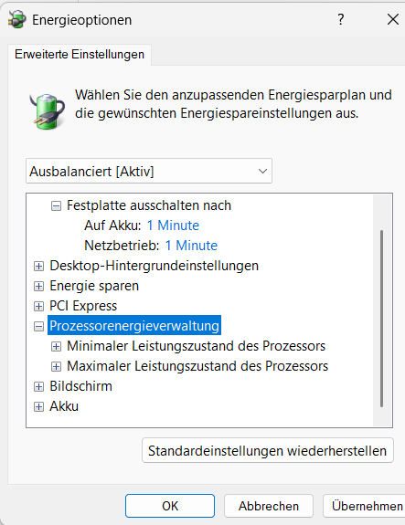 ich wollte mal in die Runde fragen, ob ihr Lust habt mir zu helfen beim Thema “Energie sparen” unter Windows 11 Home bei meinem neuen Laptop. 🙂