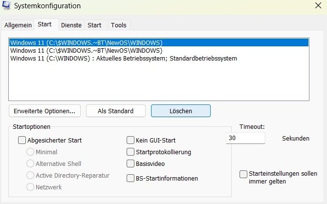 Das habe ich schon gemacht.Schildkröte09 schrieb:@xmade: Lösche erst mal die beiden Installationsversuche in der Systemkonfiguration > Start. Sonst starten der PC immer wieder neu ins Setup.
