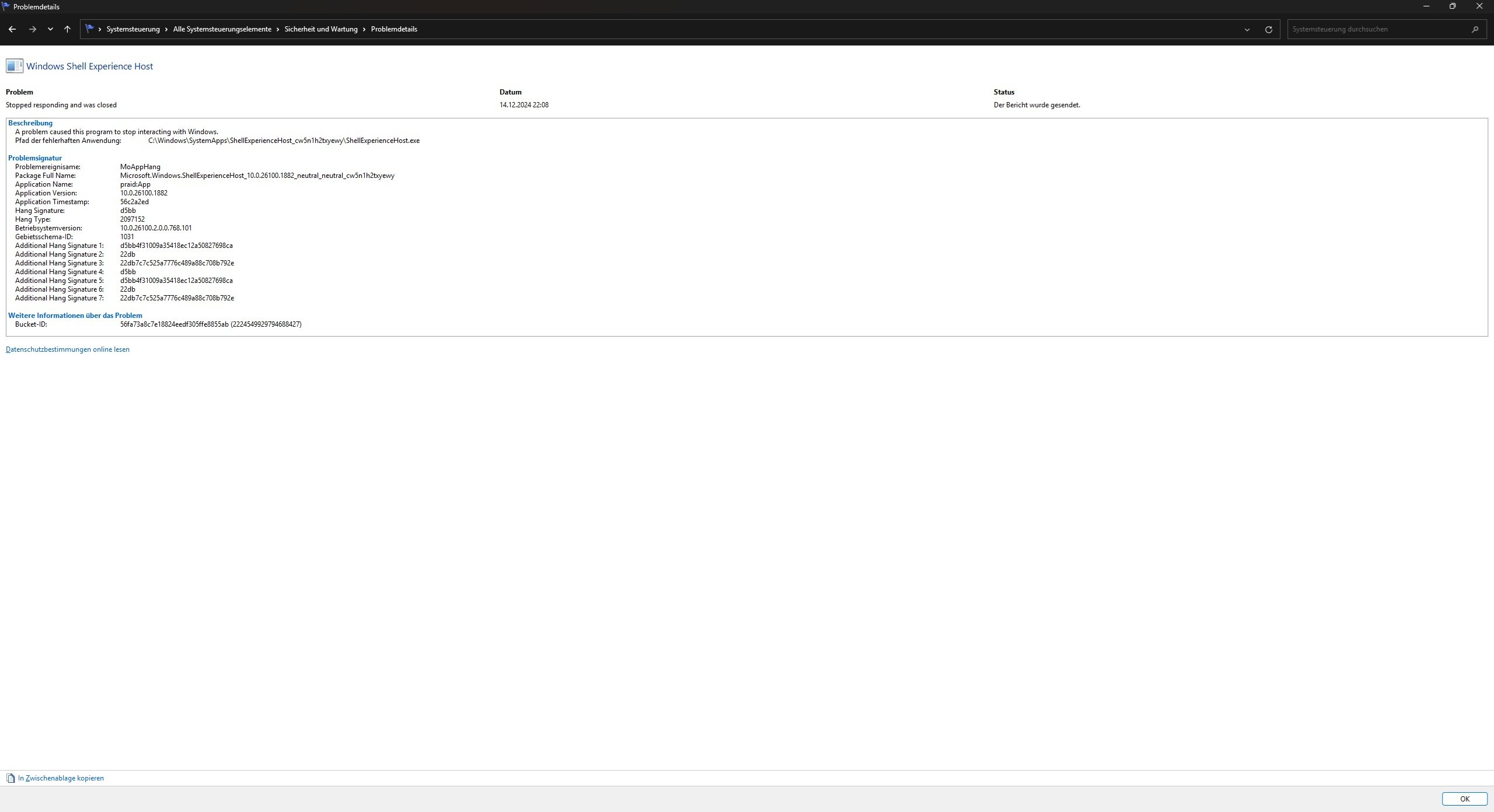 Ich frage mich ob es ein Fehler von Hunt ist, der mein System crashed oder doch ein Windows Problem.