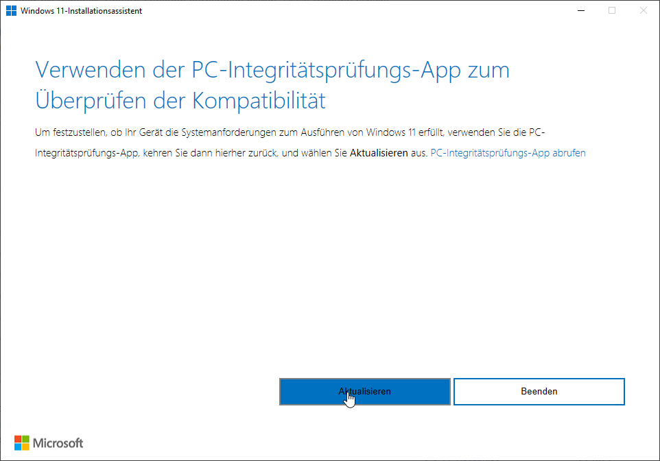 Ich möchte Windows 11 über den Installationsassistenten installieren, da mir das Update bisher nicht angeboten wird. Dazu aber am Schluss gleich mehr.