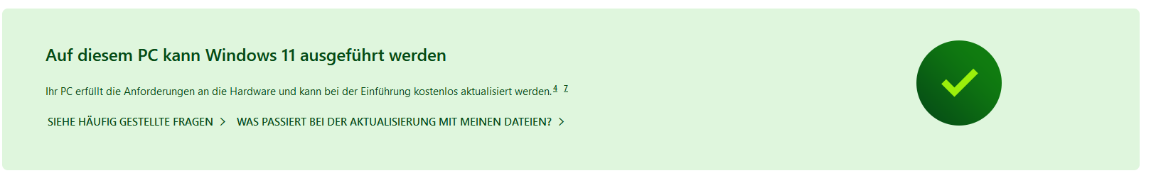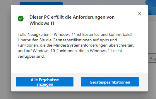 So sieht das erst mal aus, also die PC-Health-App installiert und ausgeführt. Diese gibt mir "grünes Licht":