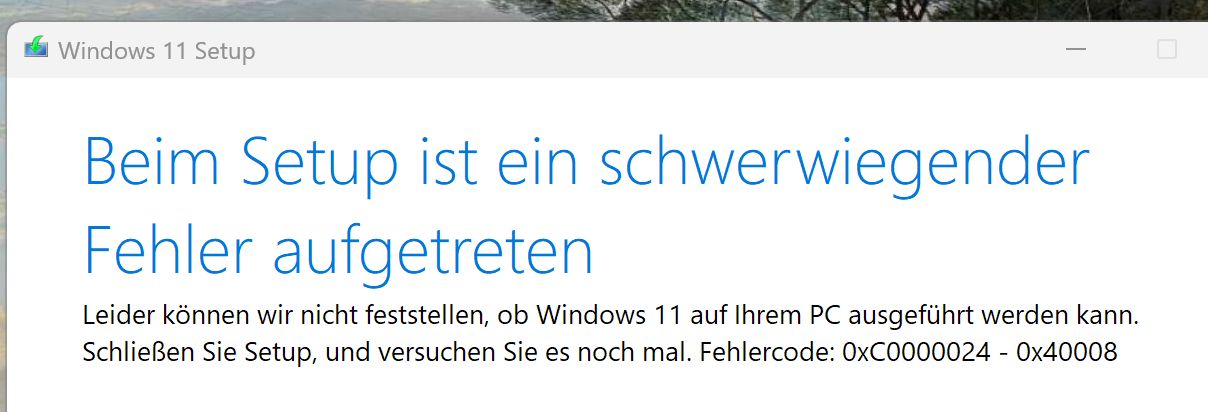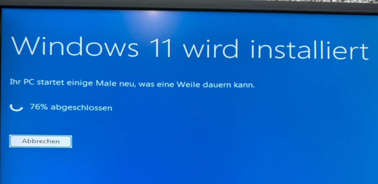 Auch auf einer leeren SSD läßt sich Windows 11 nicht installieren. RUFUS ändert auch nichts daran. Der Start mit einem USB Stick funktioniert gut, aber nach 100% der Installation bricht das Programm immer ab.