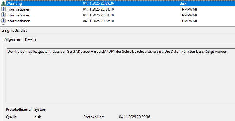 2. Datenträgercache im Gerätemanager für alle Laufwerke abgestellt..nix
