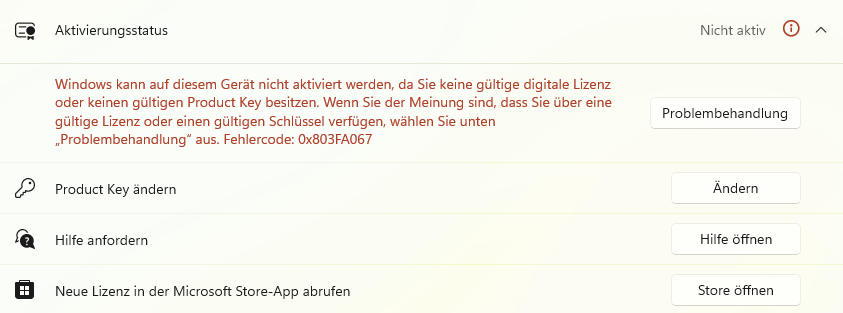 Auch ein Update auf Win 11 mit alter Hardwardware half nicht. Weder die Win 10 noch die Win 11 konnte auf das neue System übertragen werden.