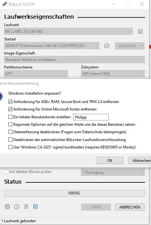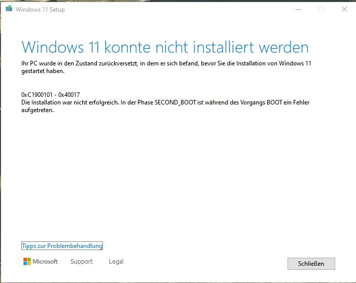 Wenn ich jetzt Win 11 über Rufus installieren möchte, dann passiert bei 46% Update laden folgendes: