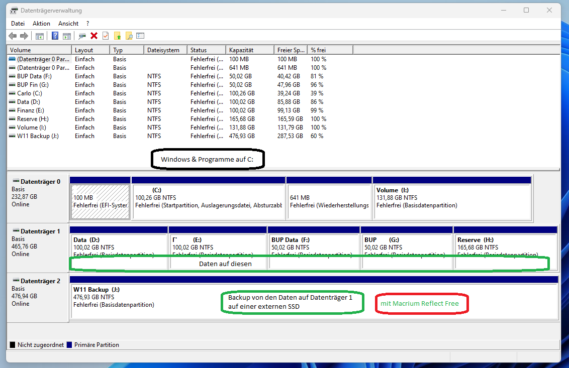 Windows C: sichere ich seit einiger Zeit nicht mehr. Windows 11 und Programme ist sauberer neu installiert, als ein Backup zurückzuspielen.