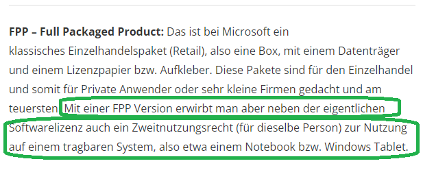 Es gibt sogenannte FPP oder Retaillizenzen, mit denen man 2 Geräte nutzen kann.