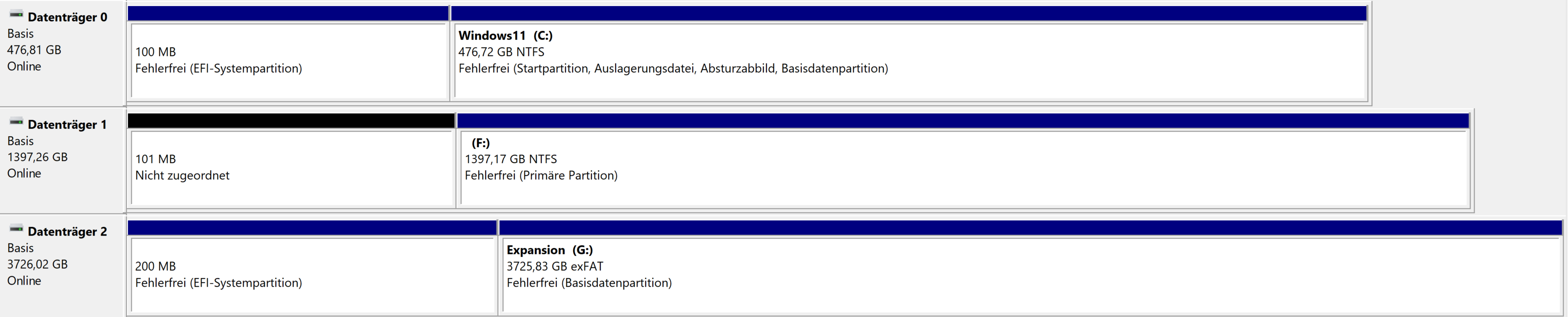 Ich habe gerade mal was neues Probiert: die eine Festplatte extern angeschlossen und die exFAT Festplatte getrennt und dann versucht zu starten. Windows 11 startet ohne Probleme. Dann liegt es ja eindeutig daran das es exFAT ist oder an dieser EFI Partition...
