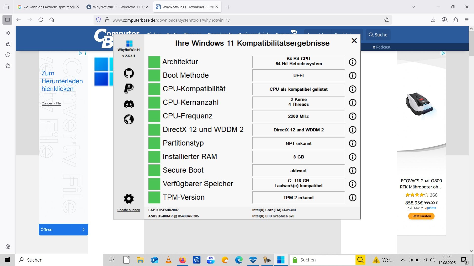 Schwiegervattern hat mir sein ASUS Vivobook gegeben. Da Win 10 ja nur noch bis Oktober unterstützt wird wollten wir Win 11 installieren. Laut Integritätsprüfung ist das Vivobook Win11 tauglich. Ich bekomme aber keine Möglichkeit das zu installieren.