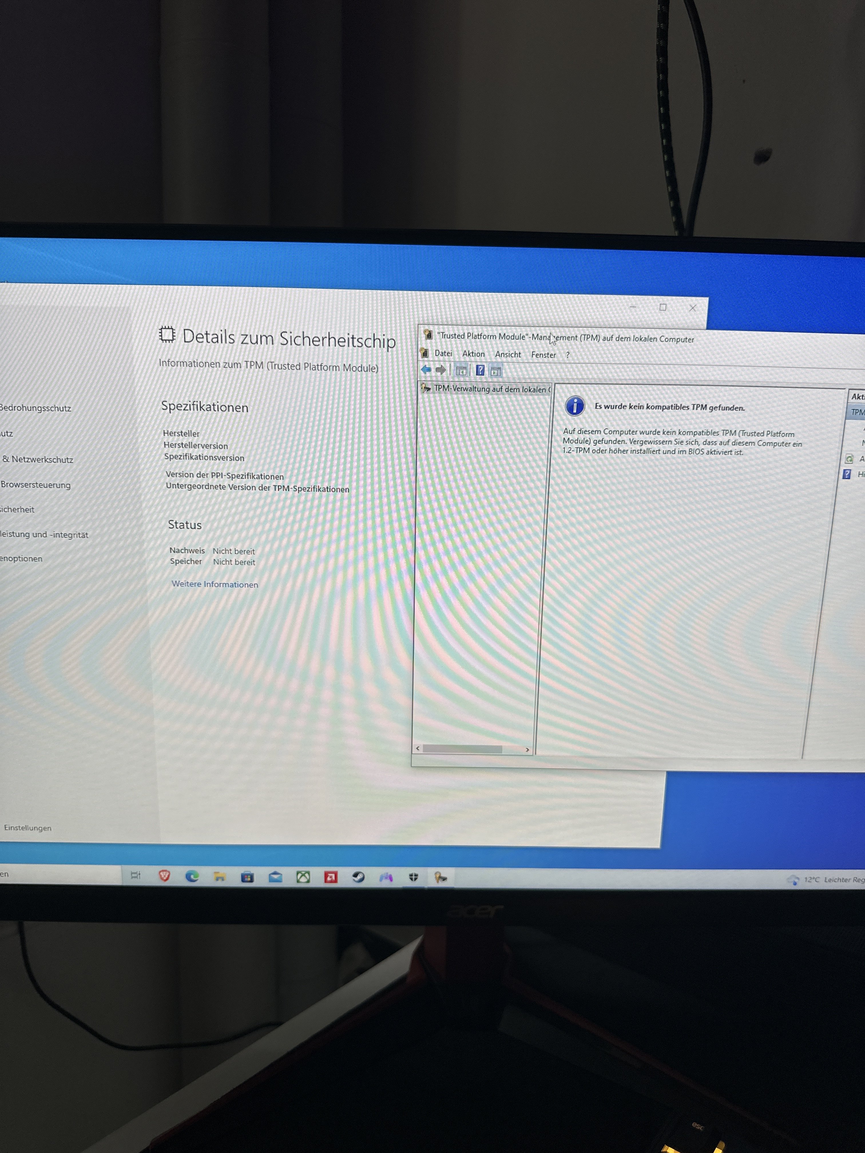 Marko8181 schrieb:Ja klar alles richtig eingestellt nur erkennt er mein Tpm 2.0 nicht
