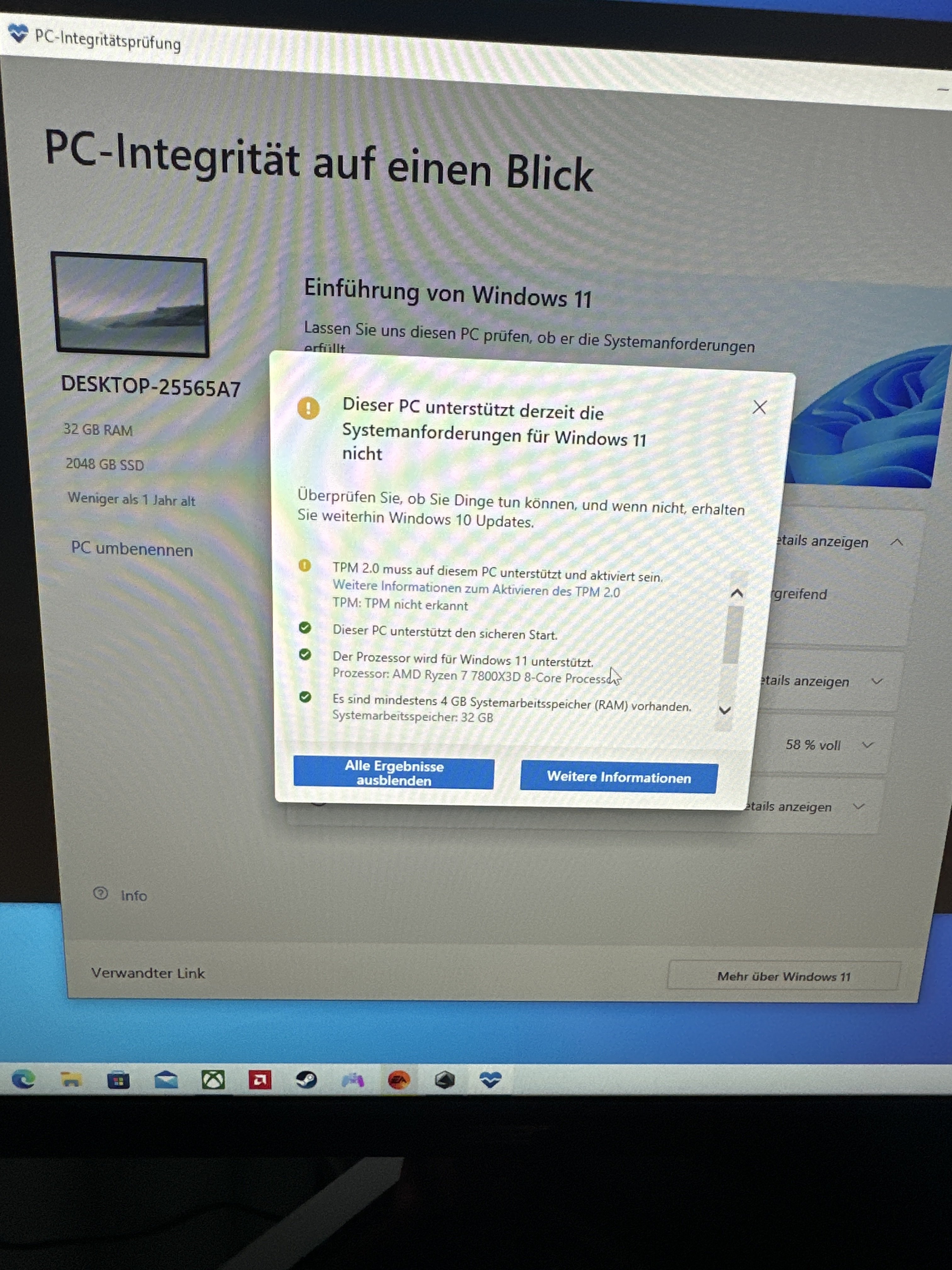 Mach doch bitte wenigstens mal einen Screenshot von der Einstellung des fTPM im BIOS, nicht dass wir hier Ewigkeiten um den heißen Brei herumreden und am Ende trotzdem etwas falsch eingestellt ist.
