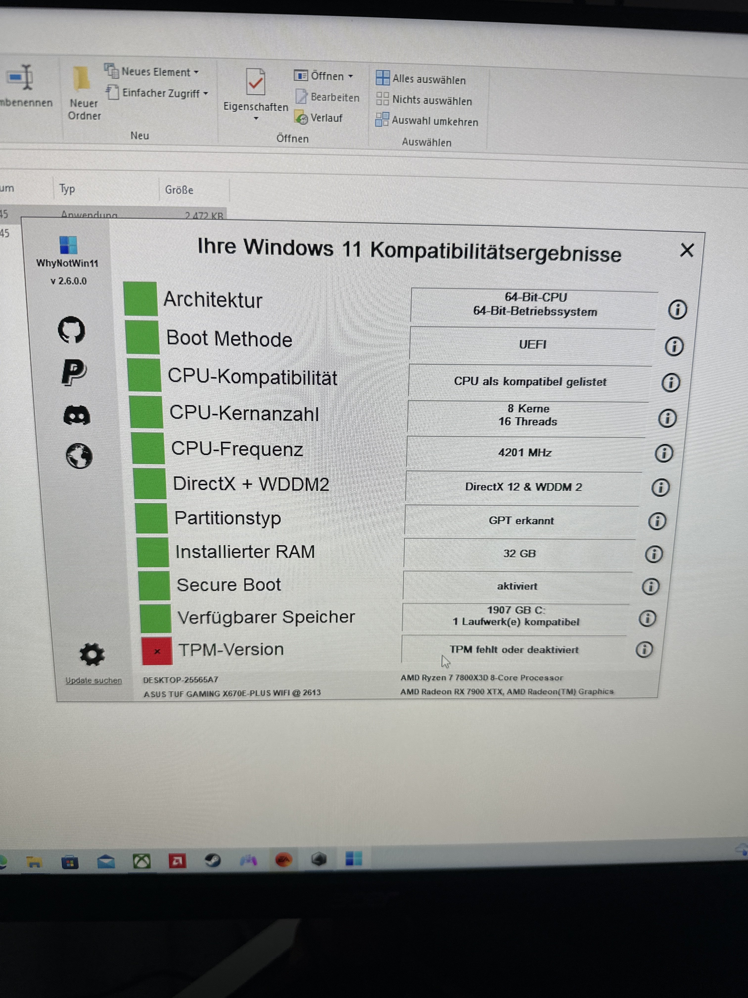 Ja klar alles richtig eingestellt nur erkennt er mein Tpm 2.0 nicht