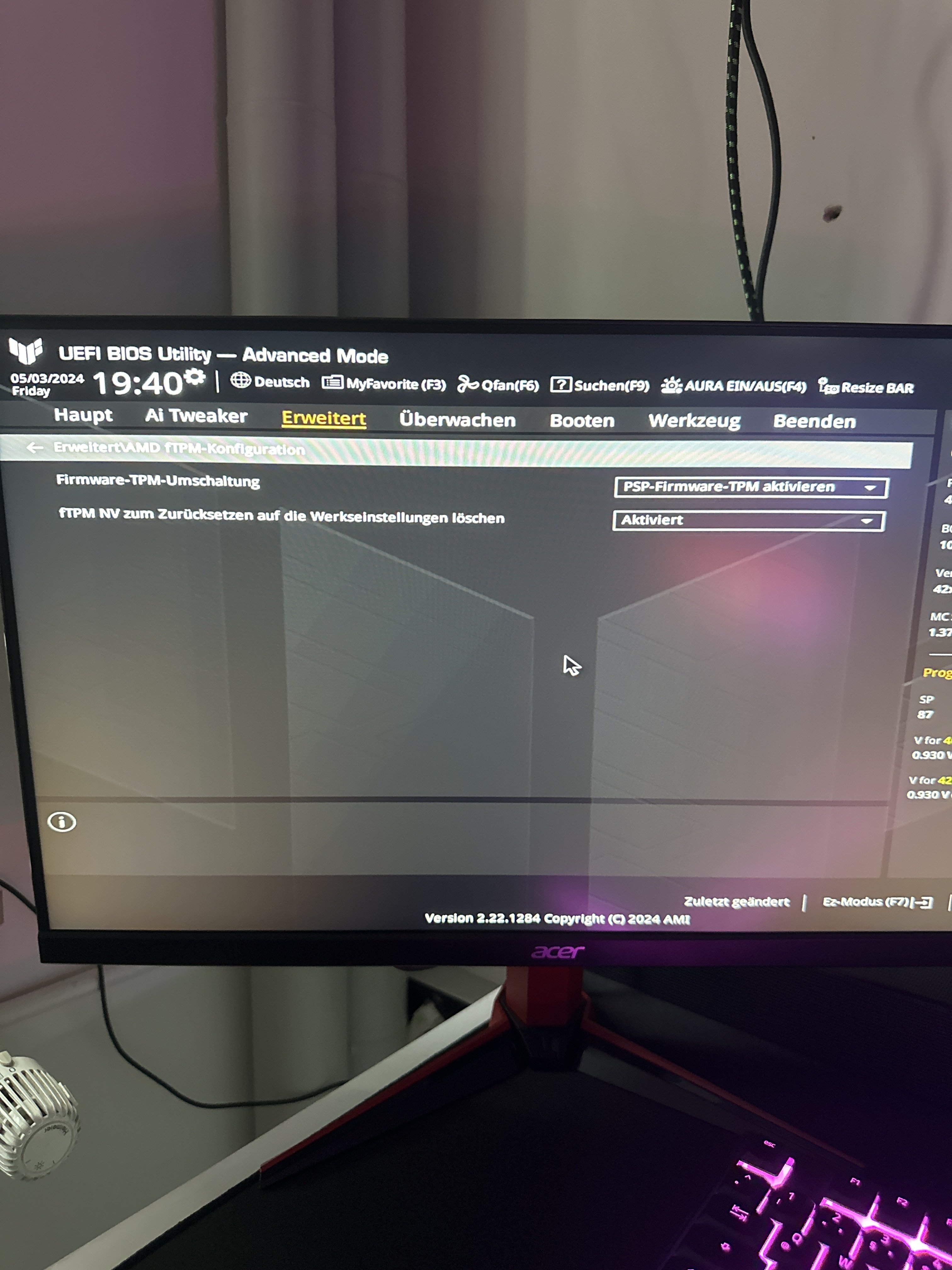 Schau das Video von ASUS an. Du bist da bei fTPM usw. @Marko8181