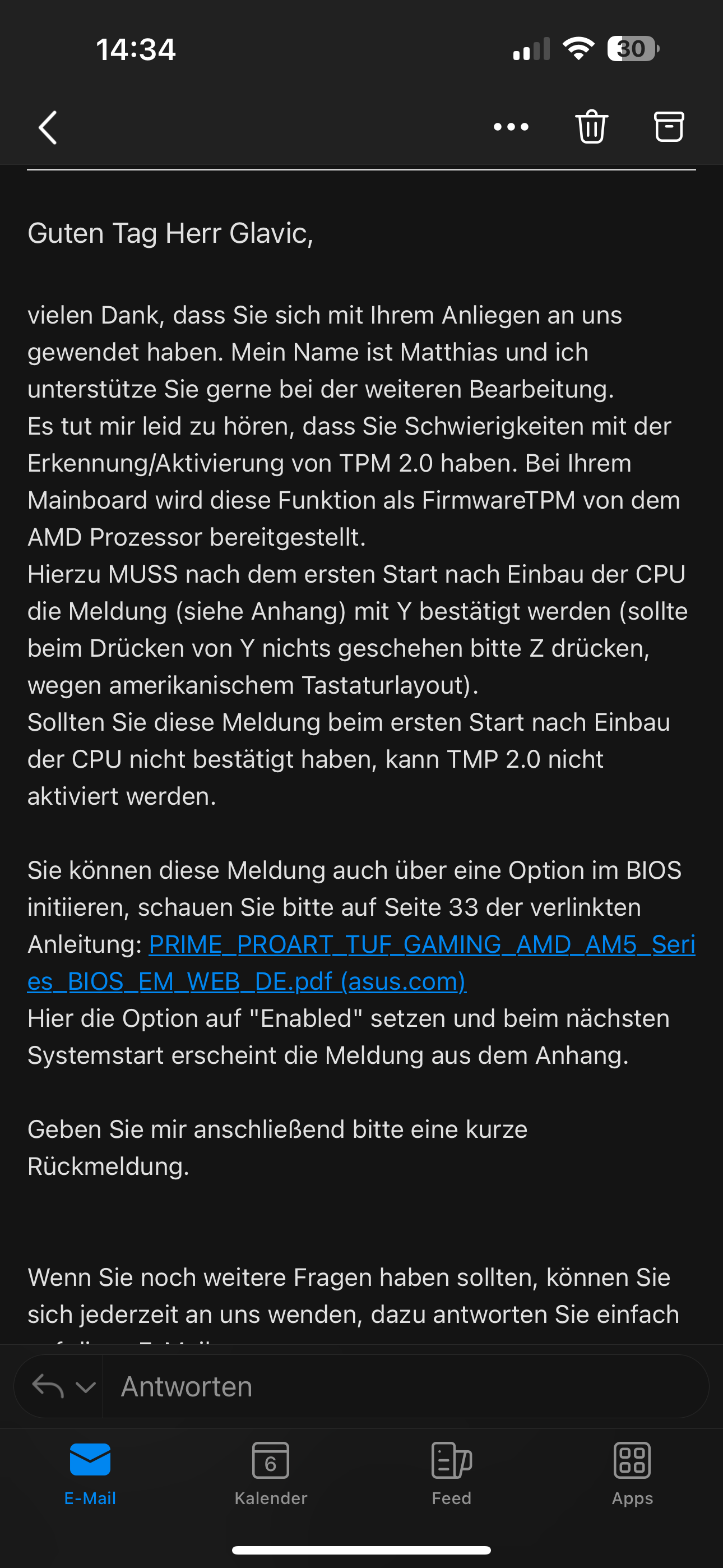 Geil also muss ich mein mainboard einschicken weil hab’s schon 100mal versucht. BIOS Update und reset auch. Würde es was bringen auf ein neues Bio Update zu warten ? Ich wollte halt downgraden aber er erkennt die Datei noch oder sagt ich soll die rollback Einstellung aktivieren obwohl ich das getan hab…Terrier schrieb:https://thewindowsclub.blog/de/how-to-enable-ftpm-on-amd-cpus-complete-guide/