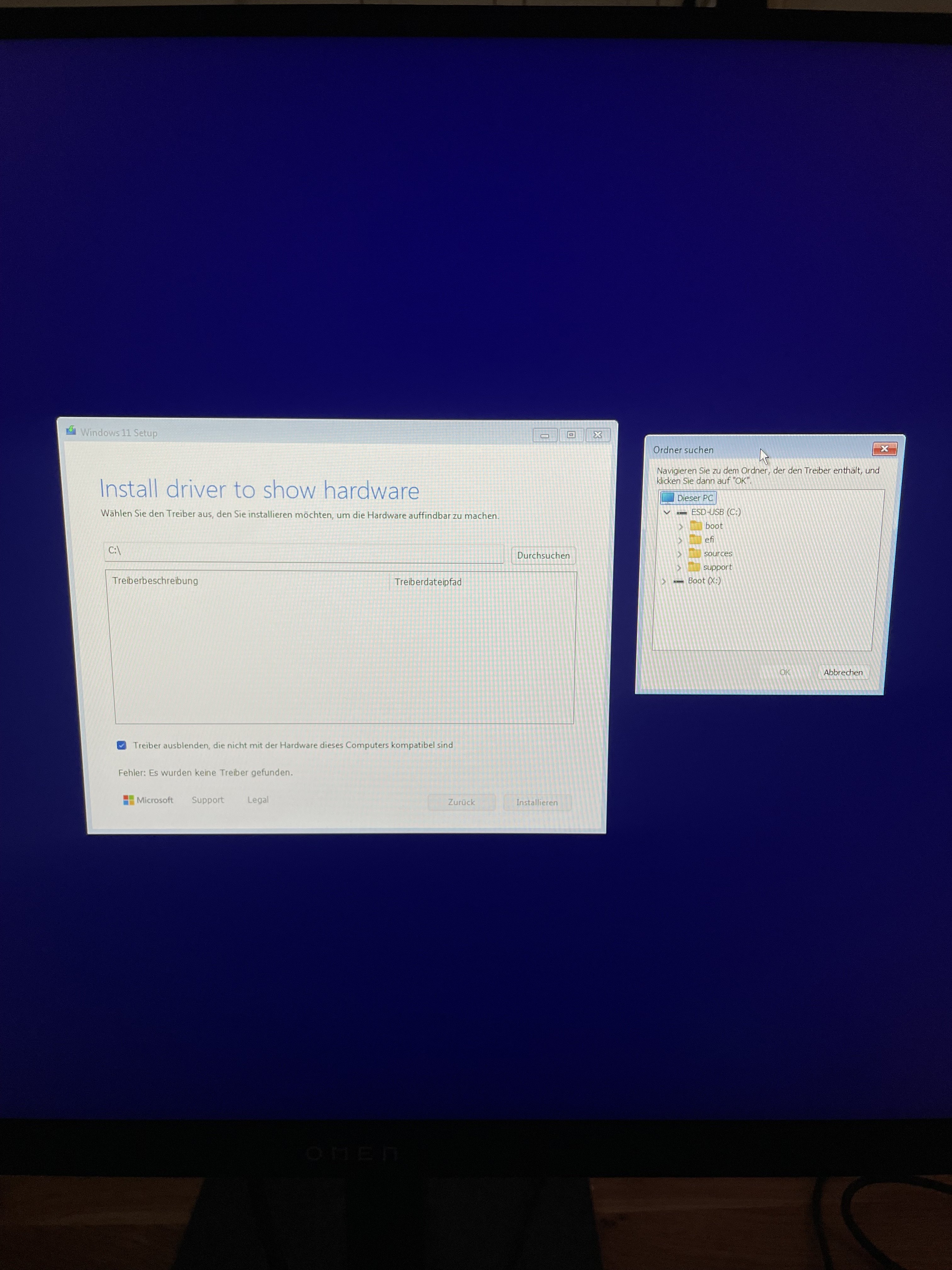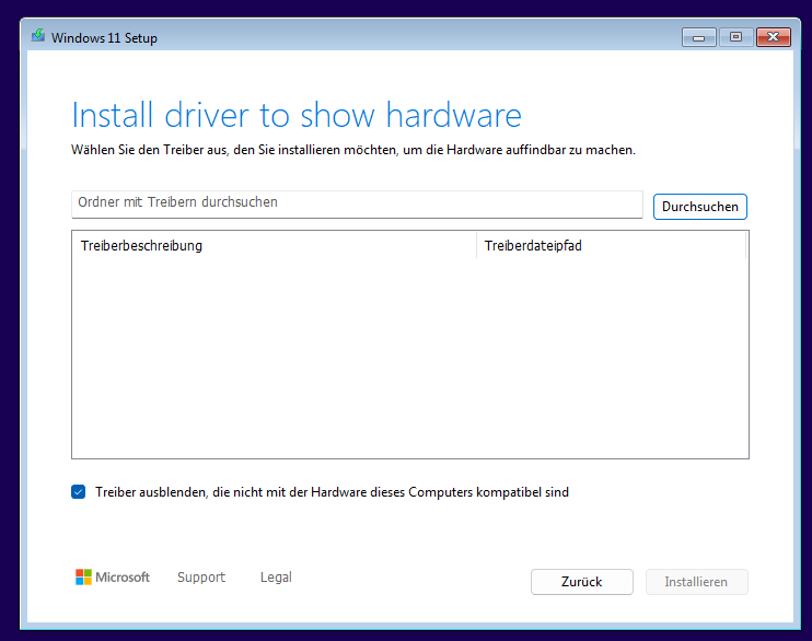 Was mich wundert ist, dass du in diesen Dialog geführt wirst. Kannst du mal ein Foto machen, was vor diesem Dialog mit dem Treiber-Laden ist?