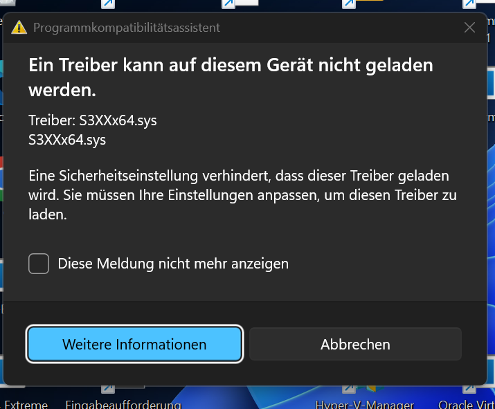 standardmäßig wird ein Treiber für Windows 11 installiert siehe Bild_____dann kommt eine Fehlermeldung beim starten