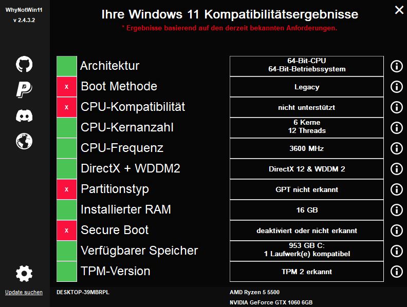 mein PC ist anscheinend nicht Windows 11 ready wegen Secure Boot - folgende Fehlermeldung: