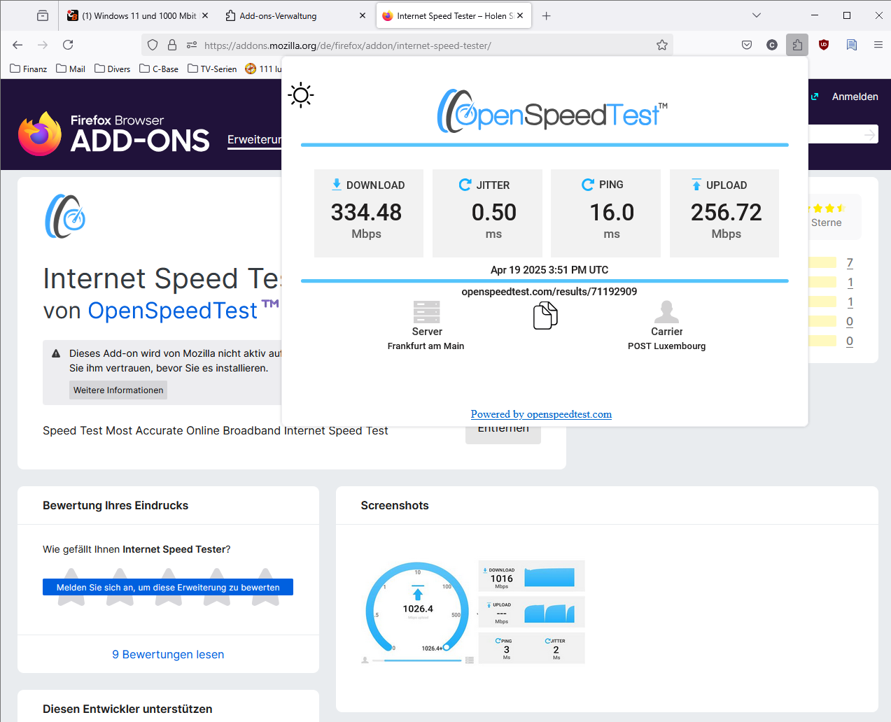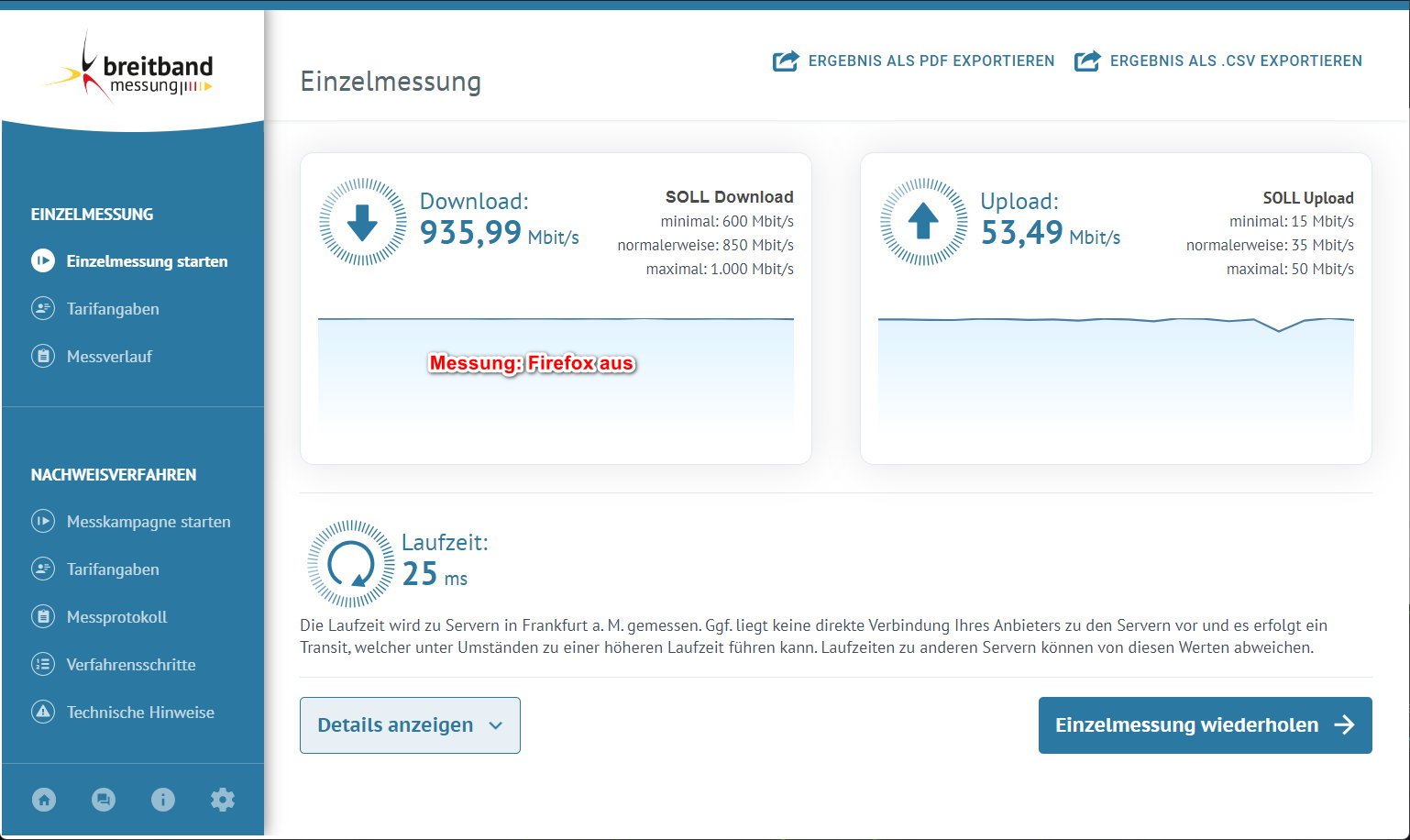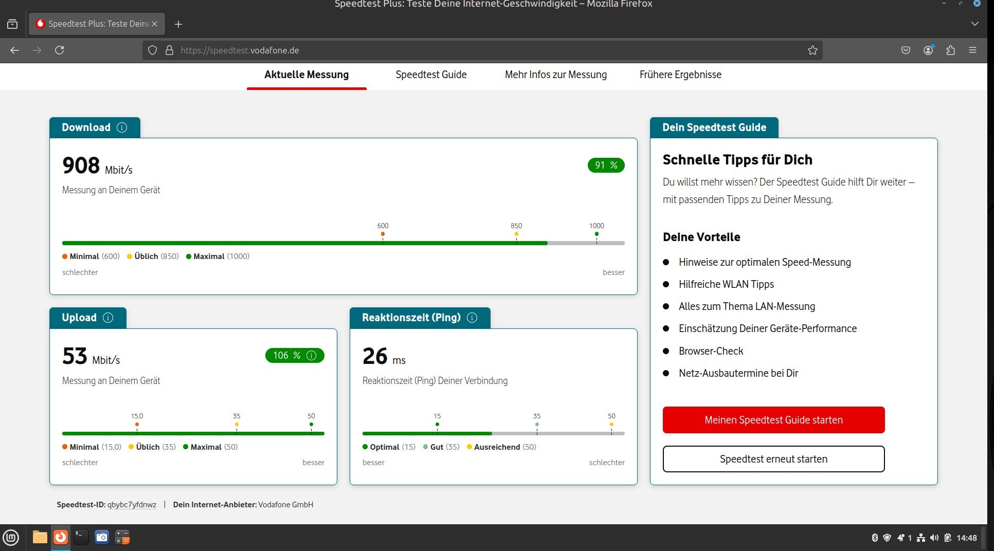 Ich bin umgezogen und genieße nun eine 1000 Mbit/s Leitung von Vodafon/Kabel.