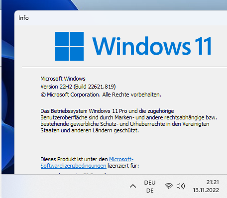 Und das wundert mich auch noch ewig und frage mich selbst warum trotzt unzähligen Upates nie auf 21H2 und 22H2 aktiviert wurde. Ich hatte nie als herunterladbare Update gesehen, nur drunter wo jetzt heute Windows 11 steht.