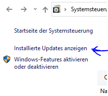 Ruf diese auf, gehe dort auf "Programme und Features" - "Installierte Updates anzeigen" (Bild 1)