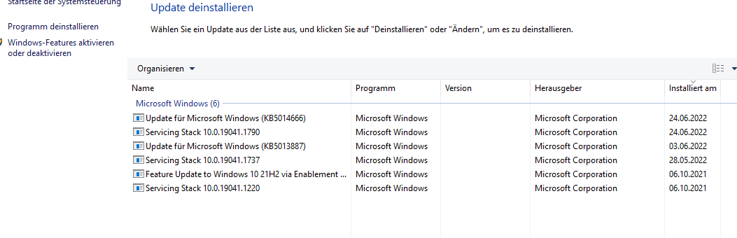 geht auch nichtNickel schrieb:Für die "KB5014019" nicht mehr, rechte Maus Taste anklicken "deinstallieren"?
