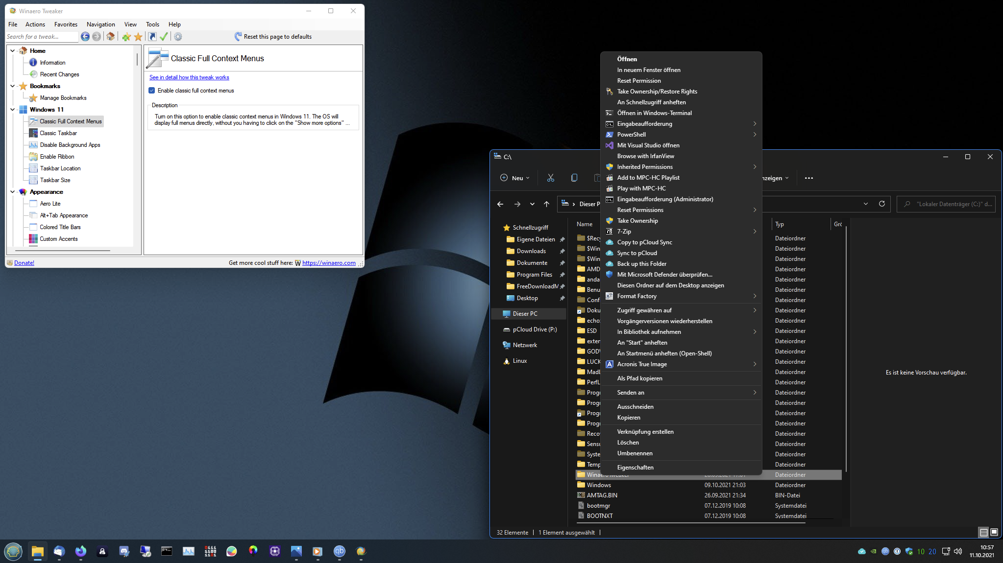 dernettehans schrieb:Gints ein registry setting um das nervige neue Rechtsklick Menü abzuschalten?
