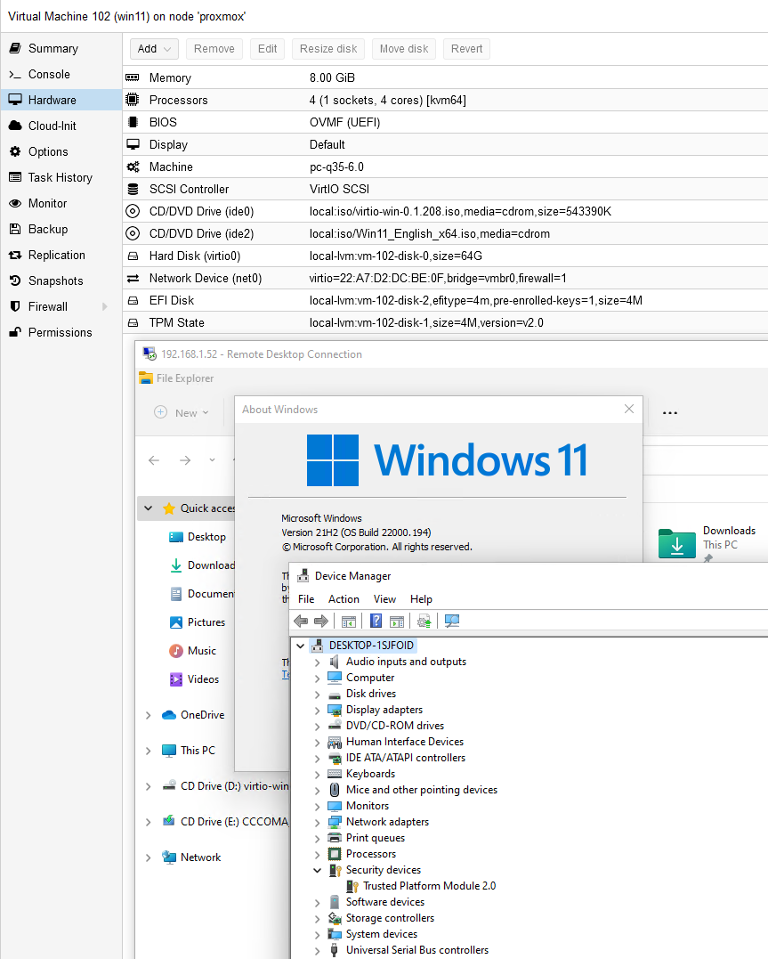wer windows 11 auf proxmox probieren will, kann das mit den letzten updates jetzt einfach tun. kvm unterstützt schon länger soft-tpm, aber nun ist auch einfach in proxmox konfigurierbar.
