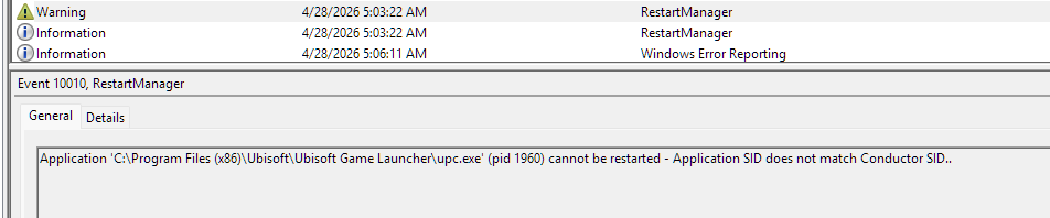 auf meinem Laptop (HP Omen) habe ich in der Ereignisanzeige wirklich viele Meldungen vom Dienst "Restartmanager"