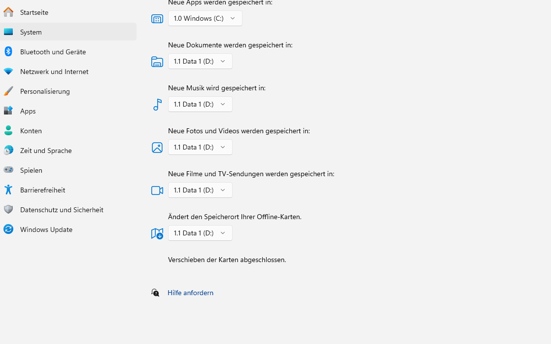 Start>Einstellungen>System>Speicher>Erweiterte Speichereinstellungen>Speicherort für neue Inhalte