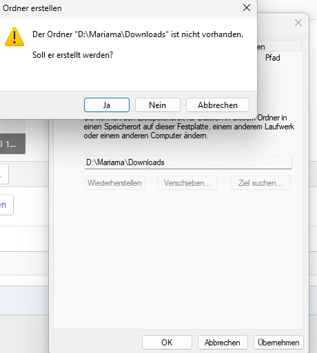 und was meinst du mit das mache ich bei allen ordnern überalll klicke ich auf pfad und gebe D:\Name\Downloads ein ?