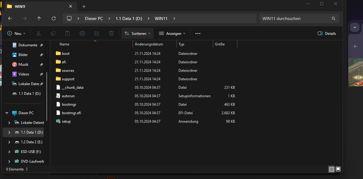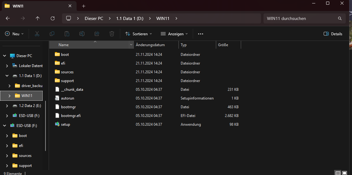 Im Verzeichnis von D;\WIN11 befindet sich die