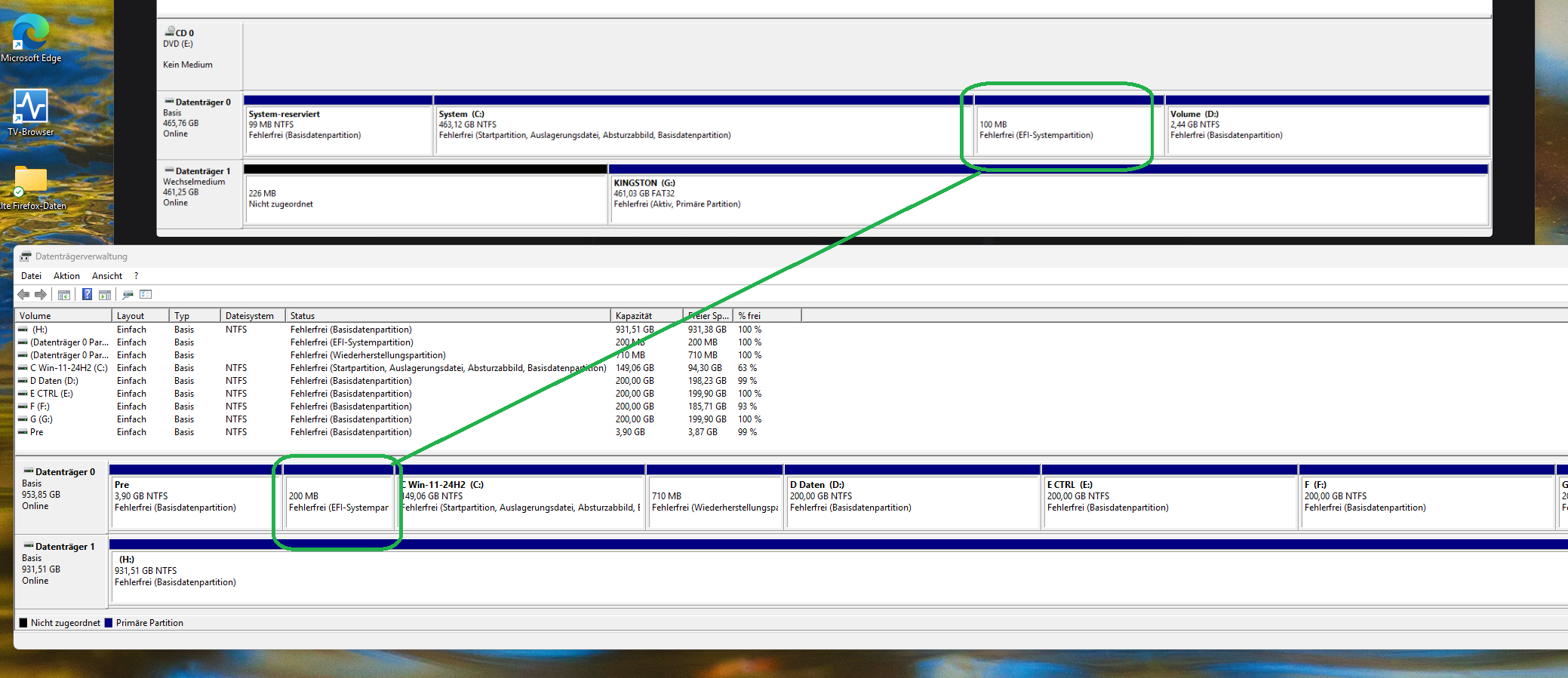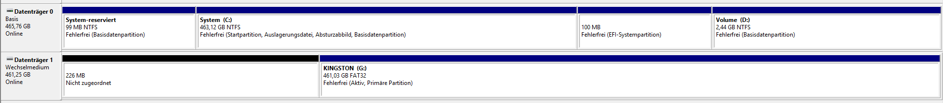Auf der Partition D liegen ein paar Daten, ich weiß allerdings nicht warum diese 100 MB Partition erstellt wurde.