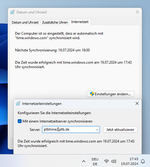 Habe schon sämtliche Einstellungen unternommen, darunter in der Registrie, Windosupdates und auch mal den anderen Zeitserver time.windows.com ausprobiert, aber nichts hat geholfen.