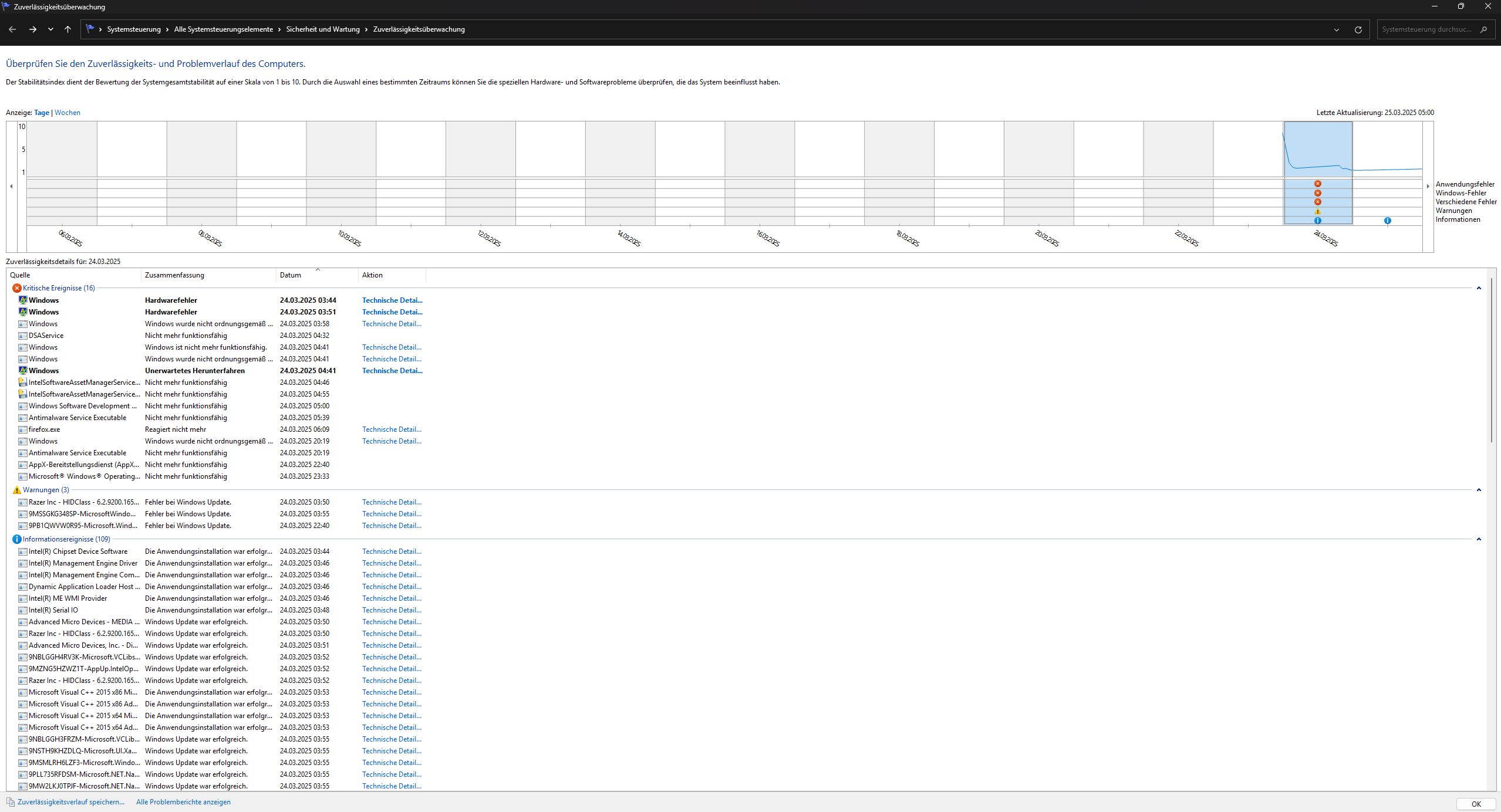 Allerdings treten beim Zocken von Spielen wie Counter-Strike oder GTA häufiger Abstürze auf – wobei sich das mit dem letzten AMD-Update (25.3.1) etwas gebessert hat. Zudem ist mir aufgefallen, dass meine Bootzeit definitiv zu lang für mein Setup ist: