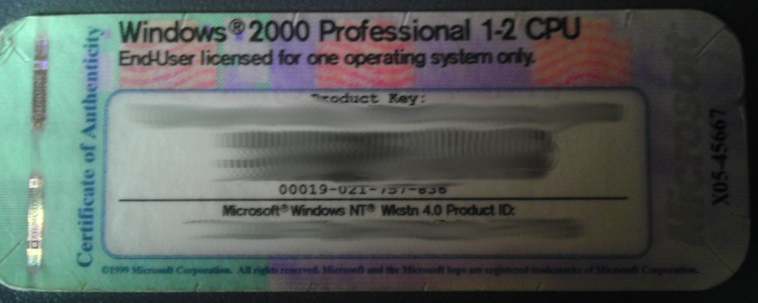 Auf der Unterseite befindet sich ein Aufkleber mit einem Key für Windows 2000 Professional.