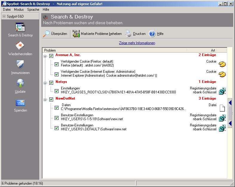 Hau doch mal dieses Microsoft Antispywarezeugs runter. Das ist nur ein Witzprogramm und am Ende eher eine Sicherheitslücke, als eine Hilfe gegen Spyware