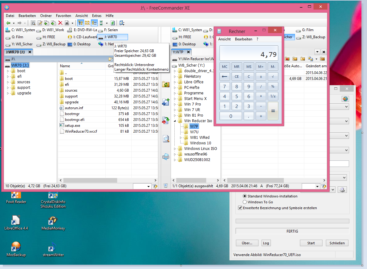 Problembeschreibung: Ich kann die Daten per UUI von der ISO auf den Stick bringen (Auswahl Windows 7, Stick eigenhändig formatiert auf NTFS), aber formatieren geht mit UUI nur mit FAT32, und da macht mir später, falls FAT32 ausgewählt wird, die install.wim mit über 4 Gigabyte einen Strich durch die Rechnung. Zudem startet ---der mittels UUI erstellte USB-Stick mit NTFS formatiert-- nicht einmal mit dem F12-Tasten-Trick die Installationsprozedur, obwohl er im Auswahlmenü erkannt wird.