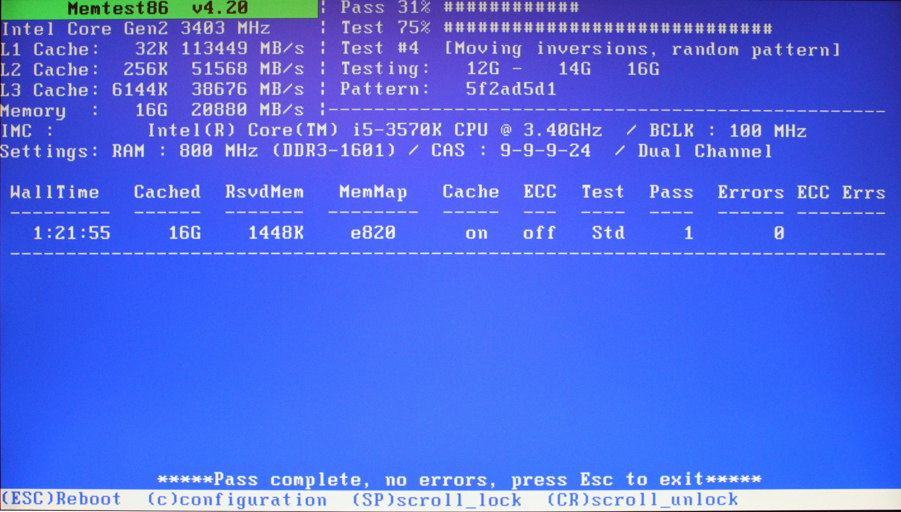 Da ich unsicher bin, ob 1,55V korrekt sind, sollte ich einen Test mit MemTest machen.
