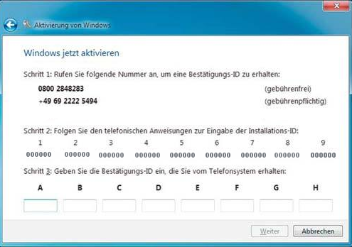 Aufjedenfall habe ich jetzt im Internet recherchiert um zu sehen wie ich das Problem lösen kann. Es wird einem dazu geraten eine telefonische Aktivierung durchzuführen. Das habe ich auch versucht, nur komme ich hier nicht weiter.