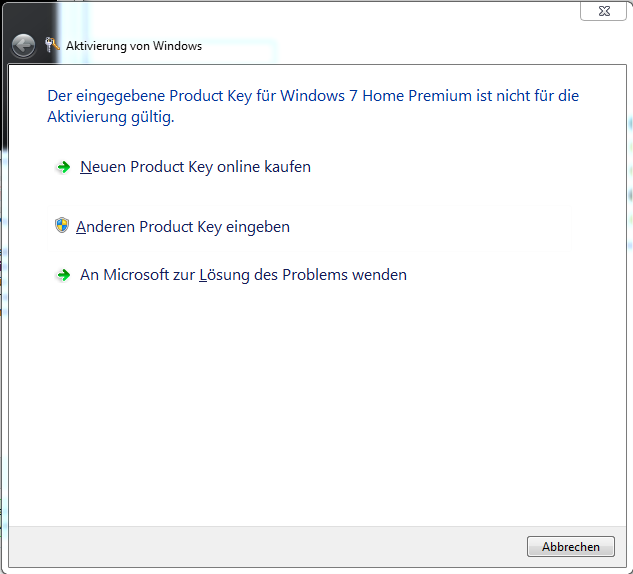Dazu erwähnen sollte ich, ich habe nach Ablauf der 30 Tage den Befehl slmgr -rearm eingegeben, damit die Frist um 30 Tage verlängert wird. Das hat auch soweit geklappt und ich dachte ursprünglich, dass dies der Hauptgrund war warum ich nicht in das Fenster gelange. Leider hat das aber auch nicht geholfen, sondern hat eben nur meine Frist verlängert.
