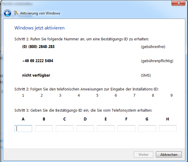 ich habe ein Problem mit meine Windows Aktivierung (Windows 7 Home Prem 64 Bit) .Wenn ich diese online machen möchte bekomme ich immer den Fehlercode 0x80070005 und telefonisch siehe Bild.