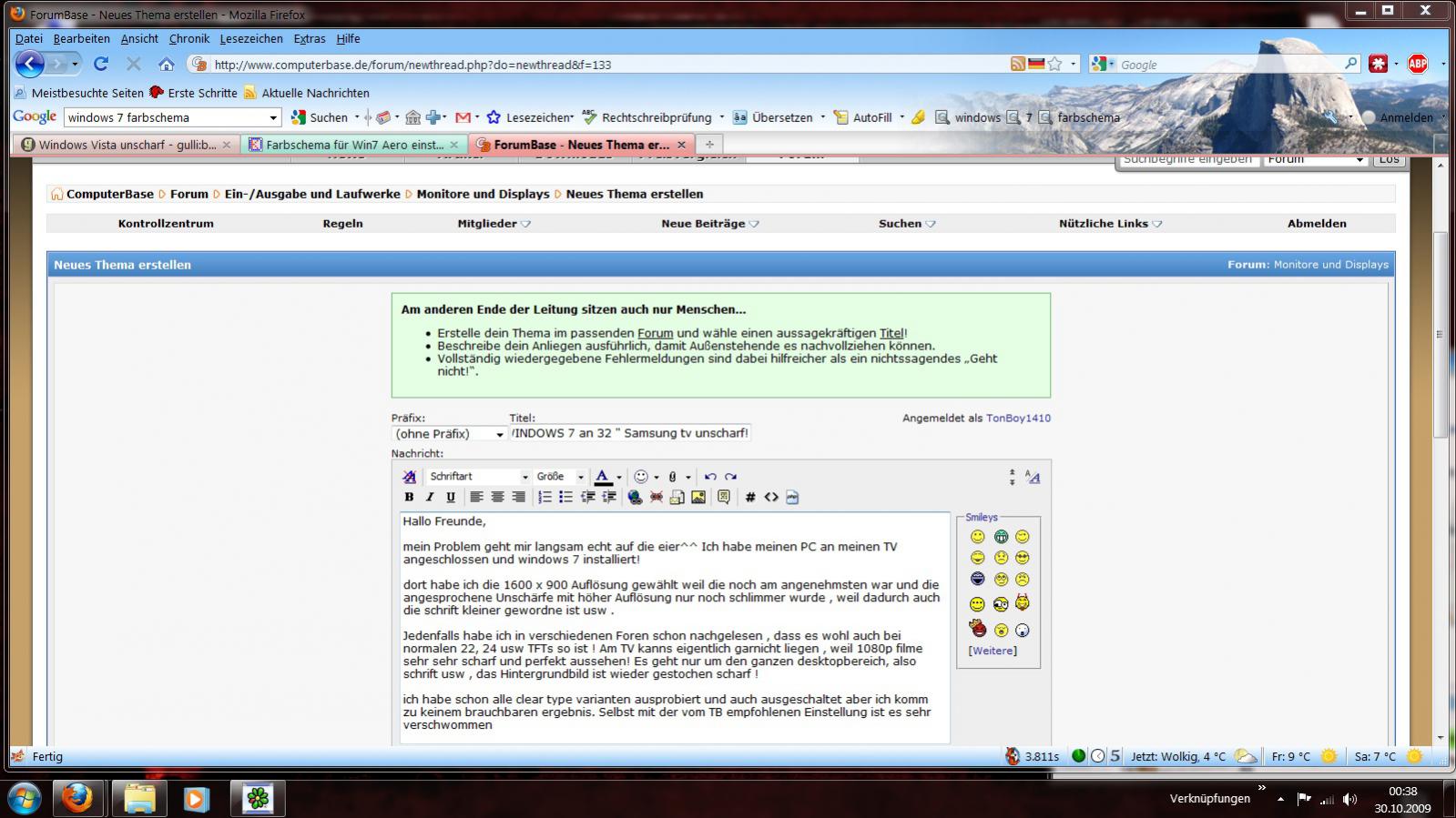 mein Problem geht mir langsam echt auf die eier^^ Ich habe meinen PC an meinen TV angeschlossen und windows 7 installiert!