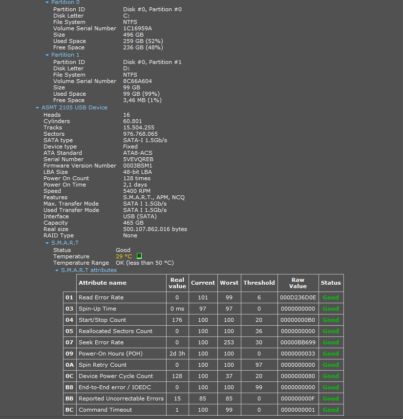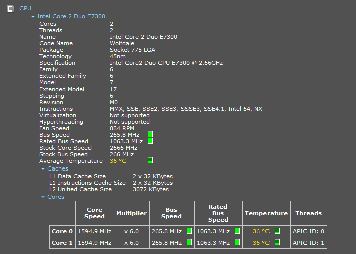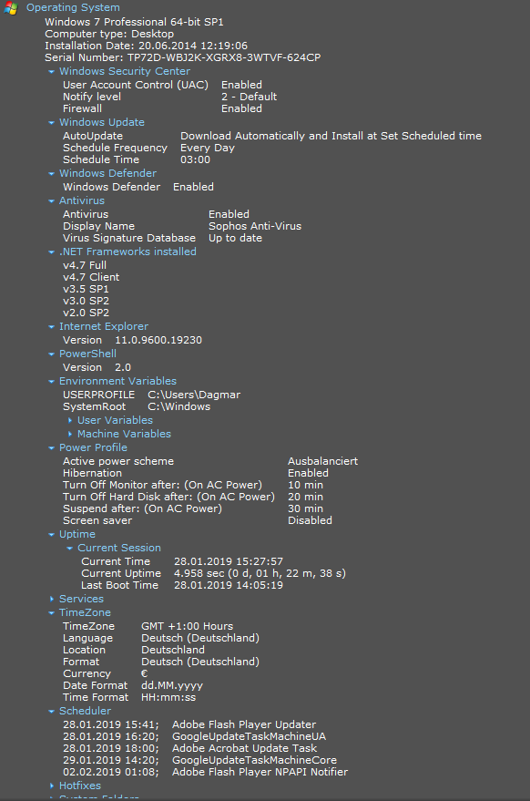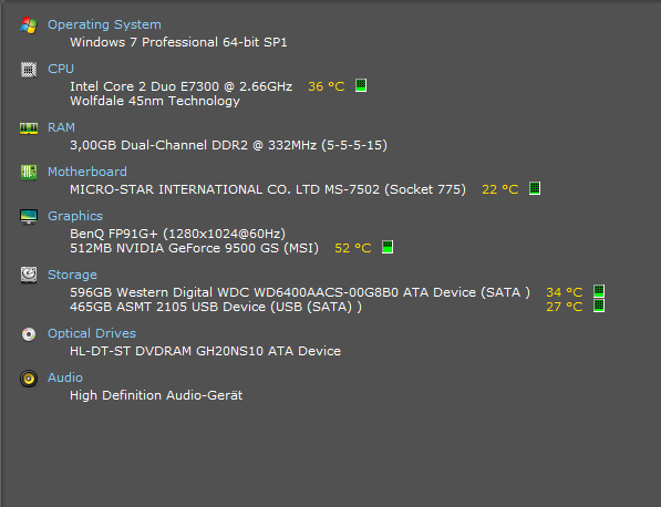 Ich werde später mal Speccy noch aufspielen und versuchen die Speicher und den Rest vom Rechner auszulesen.