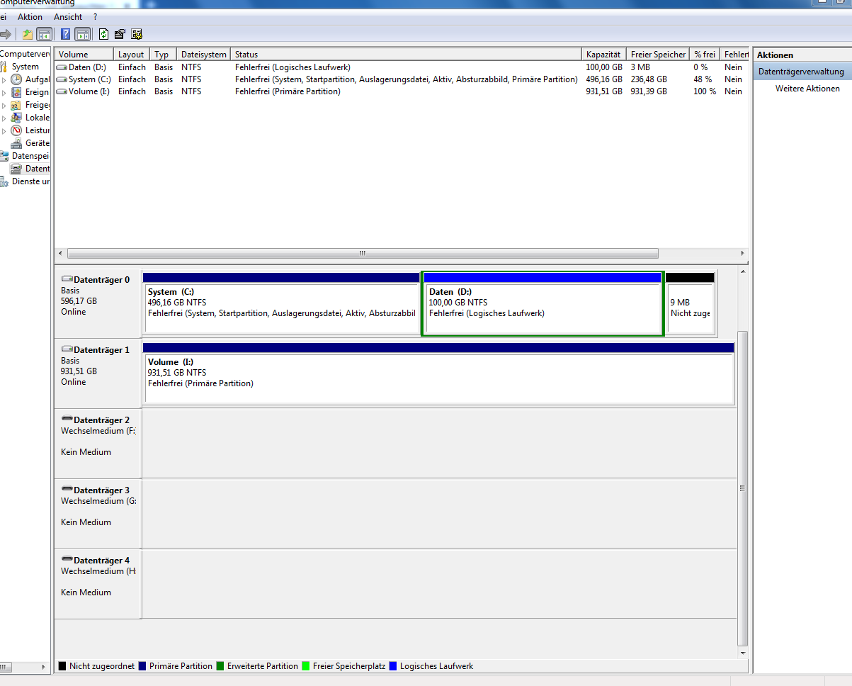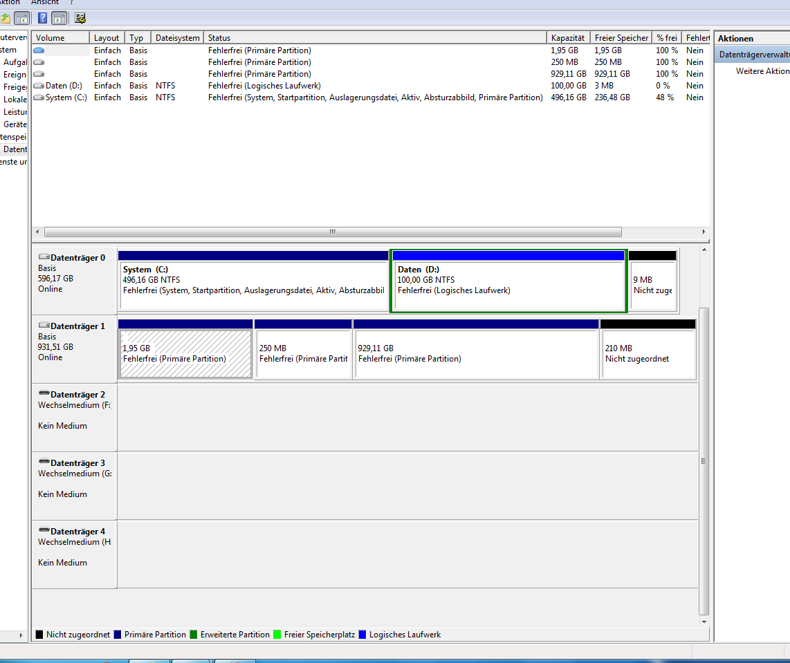 Genau so hab ich es versucht. Ich kann aber nur löschen, oder eben Hilfe auswählen. Kann es durch den früheren Einsatz im NAS dazu kommen? Egal in welches Feld in von Datenträger 1 mit rechts klicke, überall nur löschen, oder Hilfe.bisy schrieb:ja Datenträger 1, da rechtsklick auf die 929gb Partition