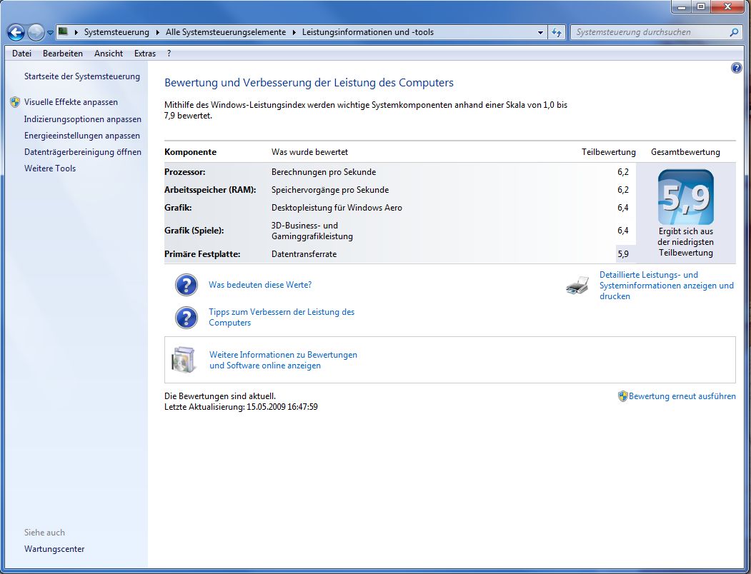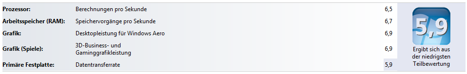Wie man sieht, sind auch ein 3.2 GHz i7 und eine 285 GTX oder eine WD Black Caviar noch nirgendwo am Maximum. Der W7 RC Index ist wohl auf 12 Kern CPU's und SSD's, sowie 4 fach SLI mit GTX 580ern ausgerichtet