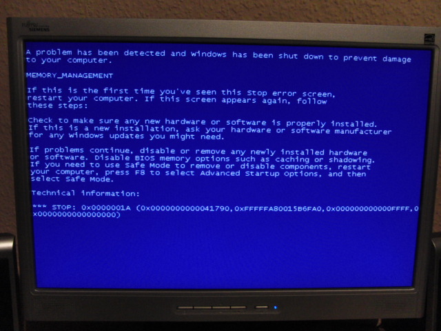 Hey, haben ein riesen Großes Problem und bräuchten mal bitte dringend eure Hilfe, mein Kollege hat sich einen PC mit einzelteilen gekauft : Gigabyte GA-880m-D2H, AMD Athlon ii X4-640 (glaube das war der,wenn kann ich noch genau gucken), 2x 2GB-DDR3- von Corsair (mit Kühlern sogesagt), eine 320 und 1000 GB-HDD, ein DVD- und BluRay-Laufwerk, so jetzt das Problem, wir hatten das aller erste mal Windows 7 (original OEM HomePremium 64-Bit) installiert wie normal, konnten alles Updaten, hatten die Treiber CD vom Mainboard mit allem installieren lassen, dann wollten wir kaspersky installieren und dann hatten wir mehrere BlueScreen bekommen und er ist nicht mehr hochgefahren. Dann haben wir alles formatiert und wollten es nochmal installieren, und jetzt kommt jedesmal bei der Win7 inst. bei 3-5% ein Stand-BlueScreen mit dem Fehler "Memory-Management" und wir wissen absolut nicht weiter.Bitte um Hilfe