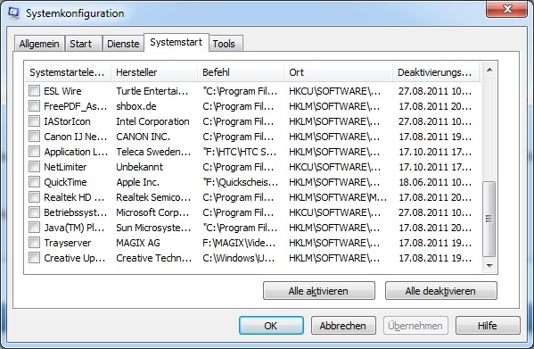 "Habe genrelle den Autostar immer ausortiert. Habe nich viel drin ausser die Standard Intel Sachen und mein Antivirus Programm"